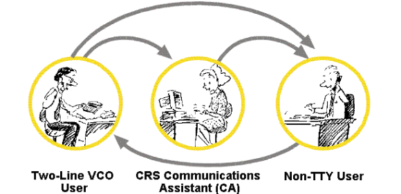 The CA will type what the other party voices to you, and the voice to the other party what you type on your TTY.